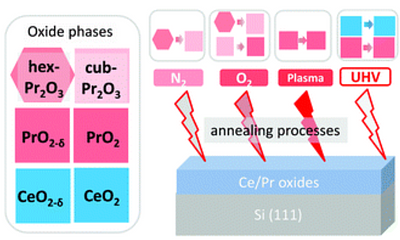 Temperature-Dependent Reduction of Epitaxial Ce1–xPrxO2−δ (x = 0–1) Thin Films on Si(111): A Combined Temperature-Programmed Desorption, X-ray Diffraction, X-ray Photoelectron Spectroscopy, and Raman Study